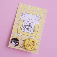 Here's a tiny reminder to smile that you can pin on your coat, or your bag or wherever else you'd like!